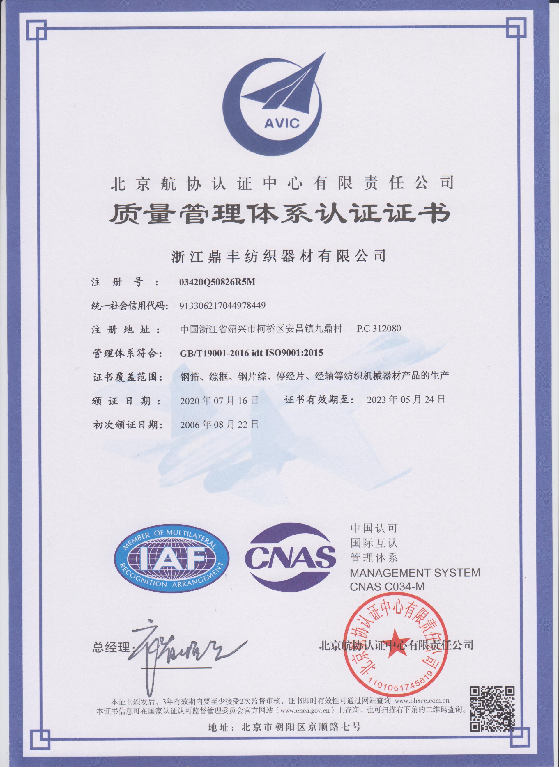 浙江鼎豐紡織器材有限公司始建于1986年,是一家專業(yè)生產(chǎn)各類無梭織機(jī)用鋼筘:噴氣筘、噴水筘、劍桿筘、其他類型鋼筘;鋁合金綜框、鋼片綜、停經(jīng)片、經(jīng)軸、織軸、卷布輥等產(chǎn)品及配件的民營企業(yè)。
